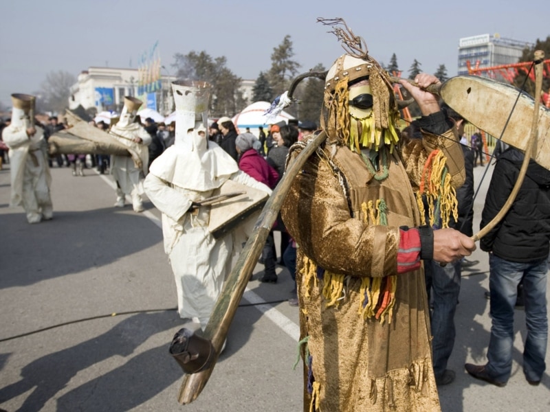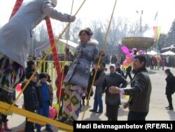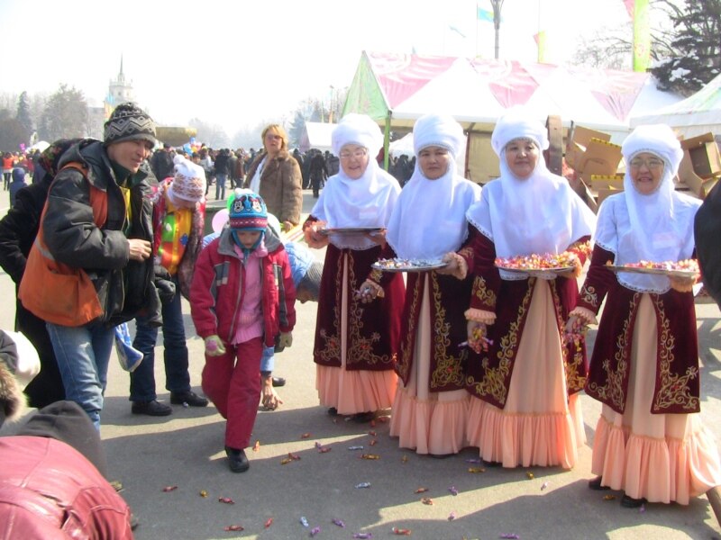 Астана алаңына жиналған халық арқан тарту, қол күрестіру сияқы ұлттық ойындарды қызықтап, жастар «Қара жорға» биін билеп, алтыбақан тепті.